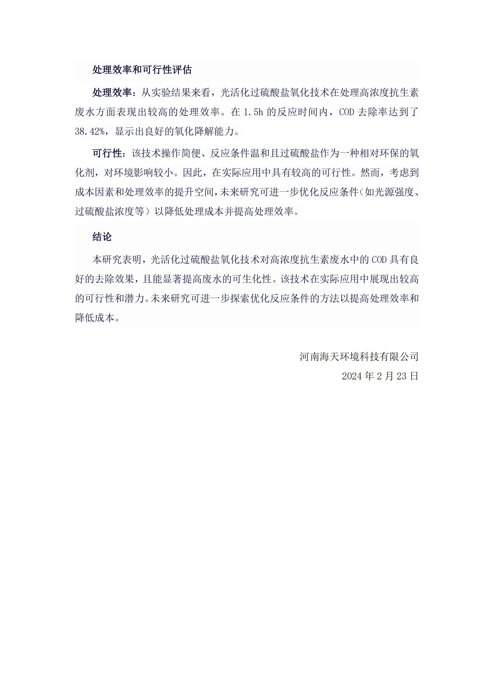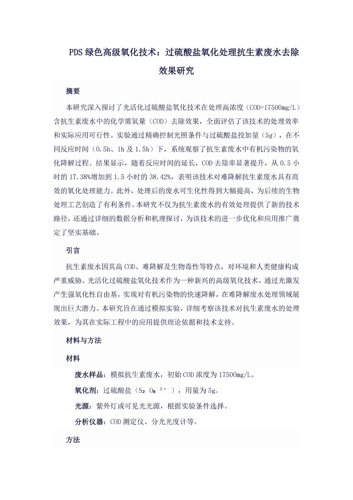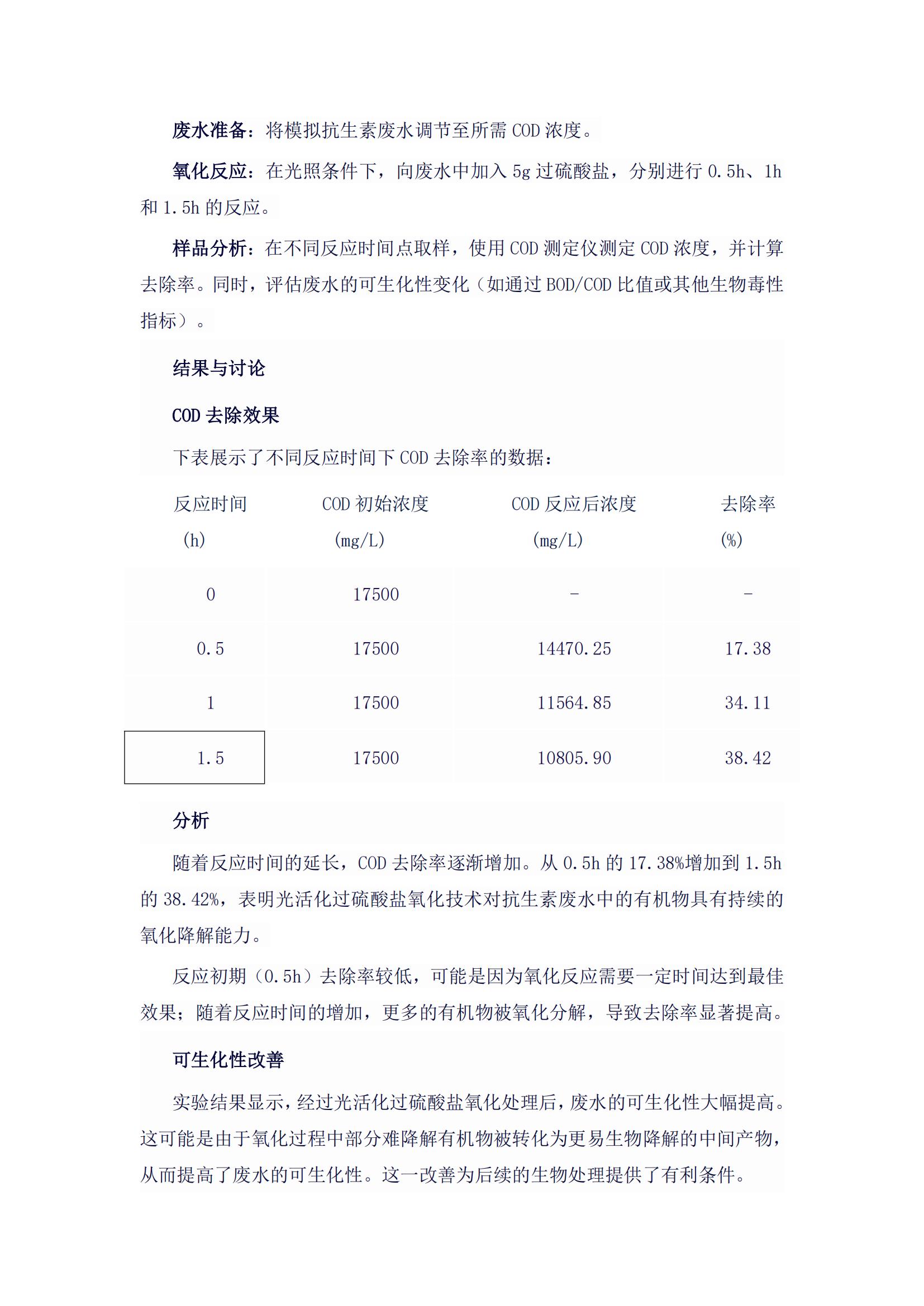過硫酸鹽氧化處理抗生素廢水去除效果研究