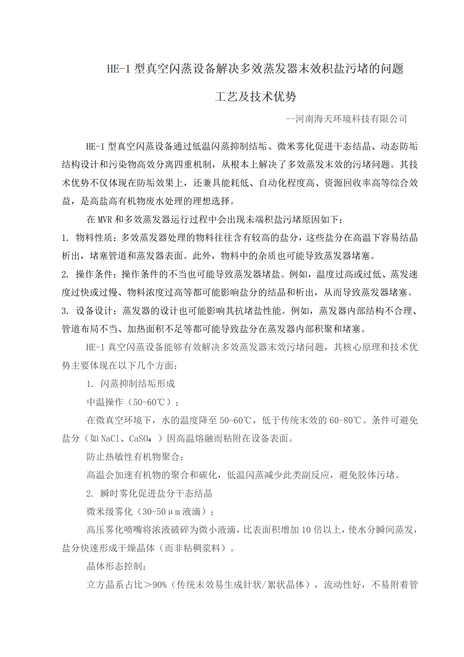 HE-1型真空閃蒸設(shè)備解決多效蒸發(fā)器末效污堵的工藝及技術(shù)優(yōu)勢(shì)