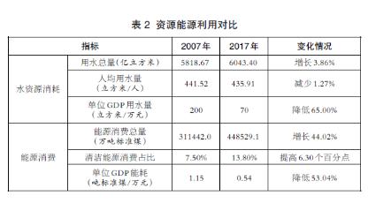 能源消費(fèi)總量持續(xù)上升,水資源節(jié)約和能源集約利用加強(qiáng),資源消耗強(qiáng)度不斷降低。與“一污普”相比,“二污普”時(shí)期我國(guó)用水量由5818.67億立方米增至6043.40億立方米,增長(zhǎng)4%左右;人均用水量由441.52立方米/人降至435.91立方米/人,下降1%左右;單位GDP用水量也由200立方米/萬元降至70立方米/萬元,降幅達(dá)65%。能源消費(fèi)總量由311442萬噸標(biāo)準(zhǔn)煤增至448529萬噸標(biāo)準(zhǔn)煤,增長(zhǎng)44%,其中清潔能源消費(fèi)占比提高超過6個(gè)百分點(diǎn);單位GDP能耗由1.15噸標(biāo)準(zhǔn)煤/萬元降至0.54噸標(biāo)準(zhǔn)煤/萬元,降幅超過50%??傮w看,雖然我國(guó)資源能源消耗總量較大、非清潔能源占比仍較高,但是利用效率不斷提高、結(jié)構(gòu)不斷向好。
