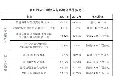 環(huán)境污染治理投資不斷增長(zhǎng),環(huán)境公共服務(wù)顯著改善。與“一污普”相比,“二污普”時(shí)期環(huán)境污染治理投資由3387.30億元增至9538.95億元,增長(zhǎng)近兩倍;環(huán)境污染治理投資占GDP比重降低0.10個(gè)百分點(diǎn),主要是因?yàn)榄h(huán)境污染治理投資增速低于GDP增速;環(huán)境污染治理投資中城鎮(zhèn)環(huán)境基礎(chǔ)設(shè)施建設(shè)投資占比提高20個(gè)百分點(diǎn),而工業(yè)污染治理完成投資比重降低14個(gè)百分點(diǎn)。城鄉(xiāng)居民環(huán)境公共服務(wù)方面,建成區(qū)綠化覆蓋率提高近6個(gè)百分點(diǎn),建制鎮(zhèn)污水處理率提高近32個(gè)百分點(diǎn),生活垃圾無害化處理率提高近36個(gè)百分點(diǎn),農(nóng)村衛(wèi)生廁所普及率提高近25個(gè)百分點(diǎn)。環(huán)境污染治理更多投資于環(huán)境基礎(chǔ)設(shè)施建設(shè),城鄉(xiāng)環(huán)境公共基礎(chǔ)設(shè)施和服務(wù)水平顯著提高,農(nóng)村人居環(huán)境逐步改善。