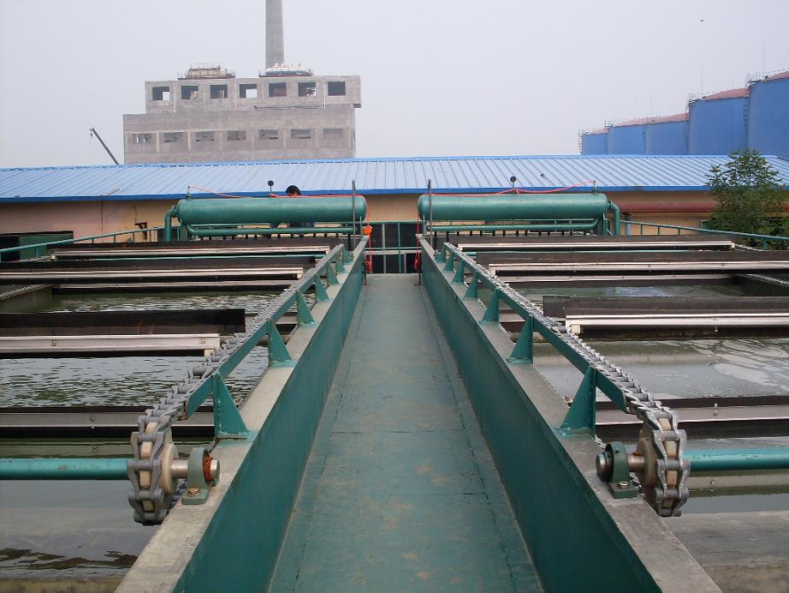 隔油池:利用油與水的比重差異,分離去除污水中顆粒較大的懸浮油。隔油池的構(gòu)造多采用平流式,含油廢水通過配水槽進入平面為矩形的隔油池,沿水平方向緩慢流動,在流動中油品上浮水面,由集油管或設(shè)置在池面的刮油機推送到集油管中流入脫水罐。在隔油池中沉淀下來的重油及其他雜質(zhì),積聚到池底污泥斗中,通過排泥管進入污泥管中。經(jīng)過隔油處理的廢水則溢流入排水渠排出池外,進行后續(xù)處理。