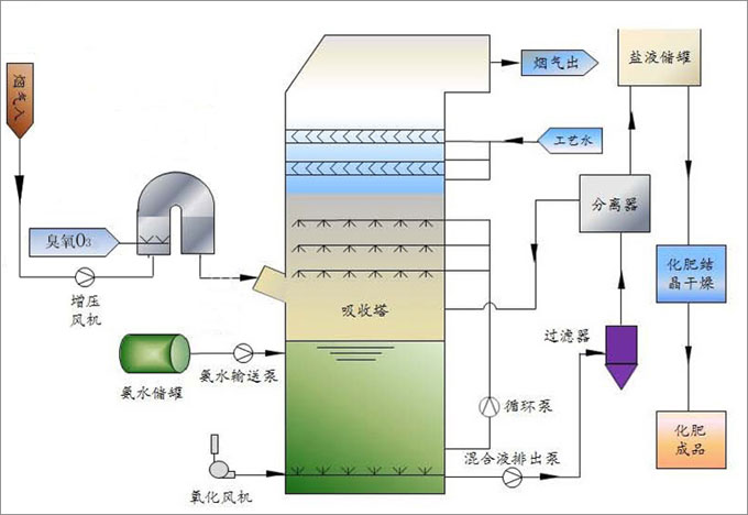隨著環(huán)保要求的日益嚴(yán)格,傳統(tǒng)的煙氣脫硫脫硝工藝將不能滿足嚴(yán)格的減排要求,此外,傳統(tǒng)工藝還存在設(shè)備投資高、占地面積大、系統(tǒng)復(fù)雜等缺點。因此海天公司研發(fā)了臭氧同時脫硫脫硝技術(shù)。