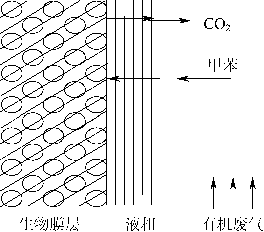 溶解于液膜中的污染物在濃度差的推動下進(jìn)一步擴(kuò)散到生物膜,被其中的微生物捕獲并吸收;
